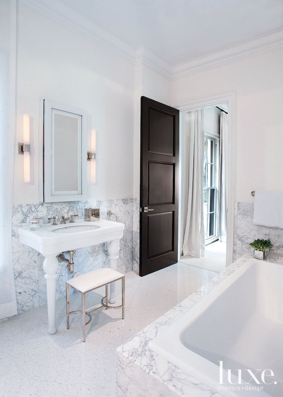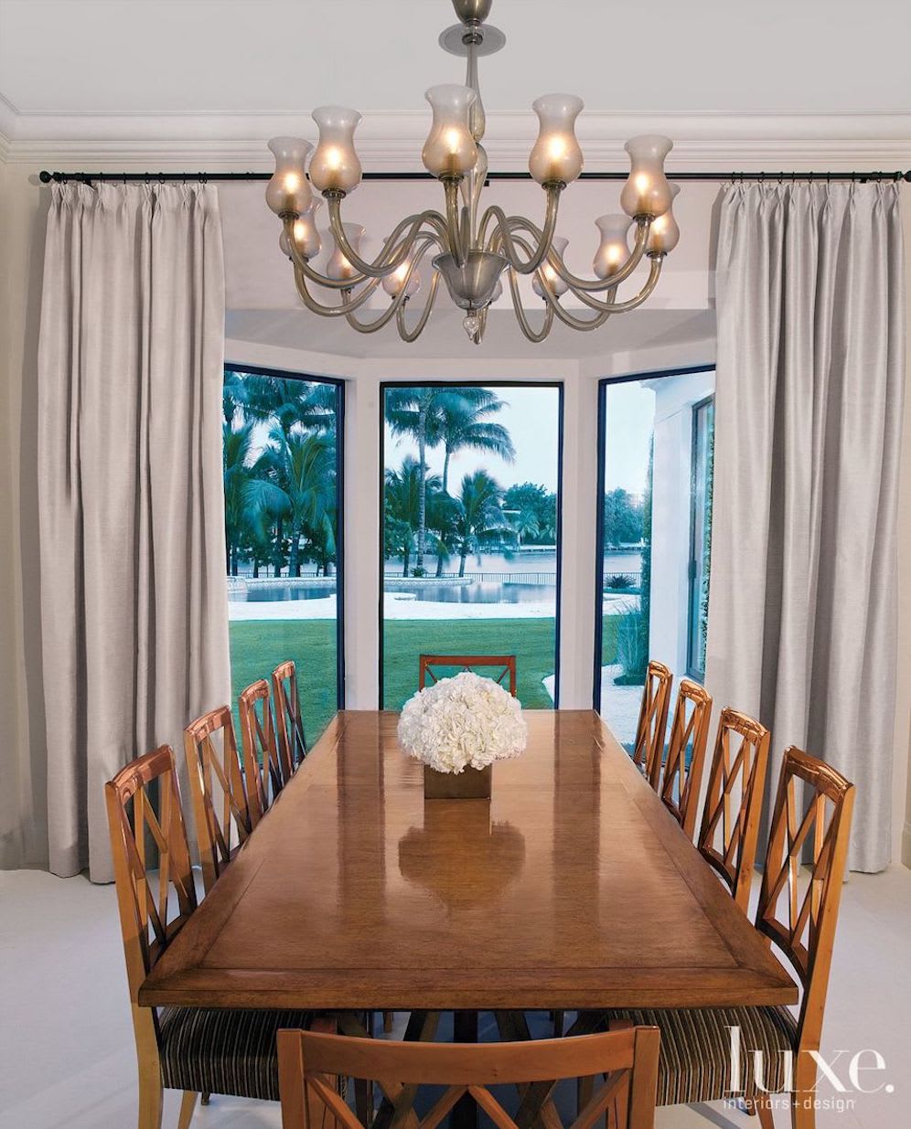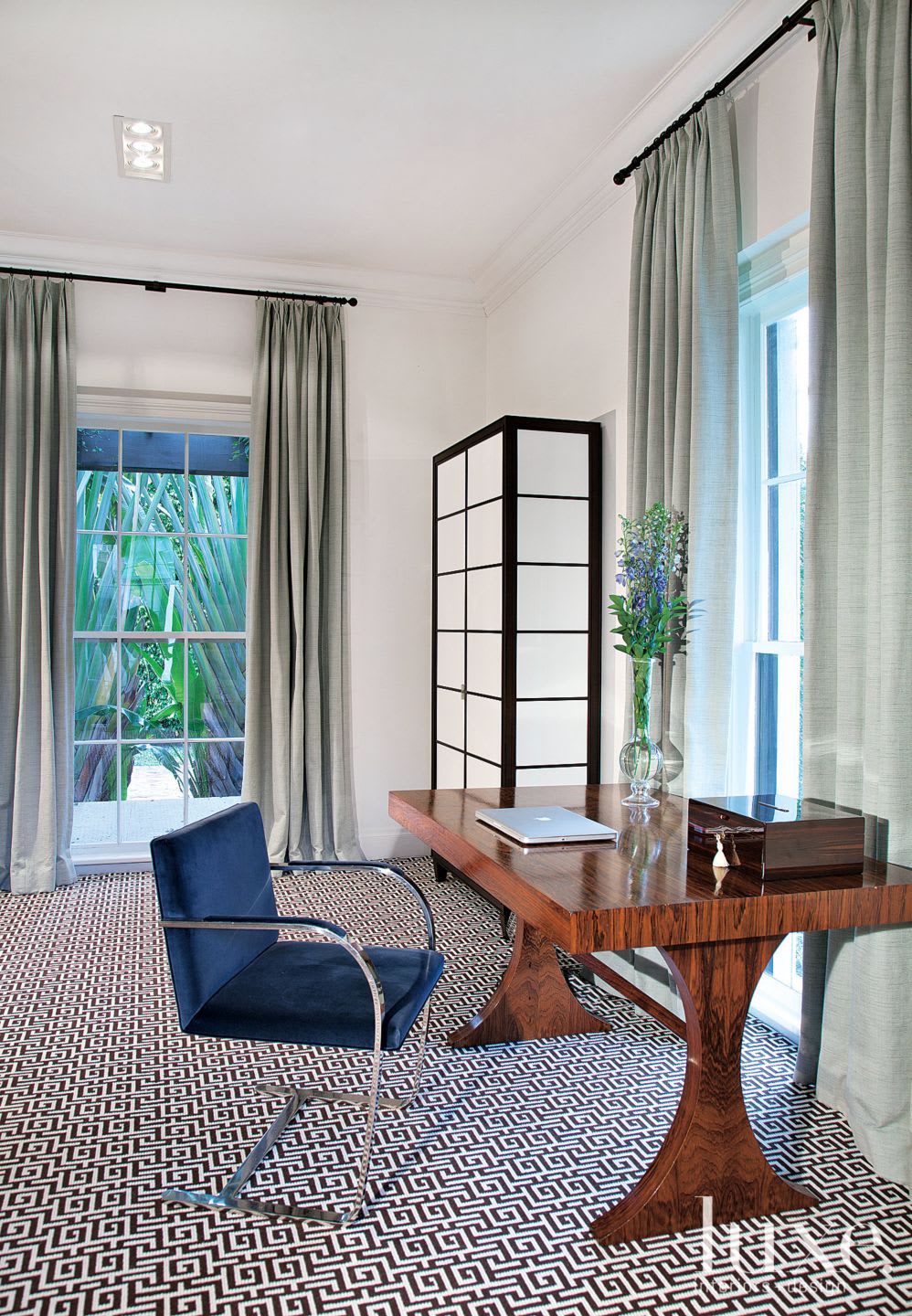 The property boasted a lovely curved pool and palms outside; landscape architect George Keen supplemented the scenery with indigenous tropical plants and more palm trees, and replaced the existing brick hardscapes with Dominican keystone. The final conundrum was a tower in front of the house in a style Gorges calls Mediterranean Moorish, an Alhambra-influenced piece of entry architecture that had been added in a previous renovation. “We debated whether or not to keep it,” says Gorges. “In the end, we decided to preserve it because of its scale.” Like the exterior, the interior reflects a design sense from many time periods, and it ought to last through many more, says Gorges: “This kind of transitional look doesn’t go out of style.”
